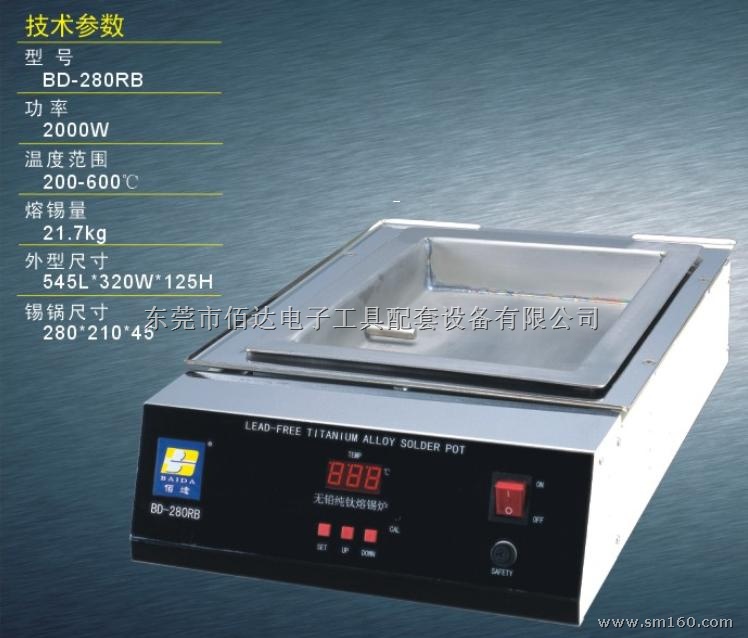1,本系列熔锡炉配置高效发热体,能快速熔解无铅锡条,从室温到达250摄氏度,只需10分钟左右。