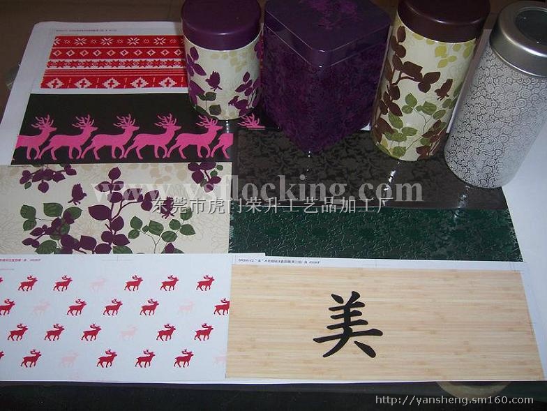 荣升工艺品加工厂主营: 1.各类纸张表面植绒:如相册、笔记本、礼品盒、贺卡、商标吊牌植绒等。