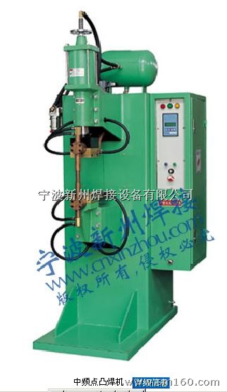 中频直流逆变式点凸焊机是目前先进之阻焊产品。应用广泛,焊接变压器体积小而输出能量大。应用于汽车工业中之一体式变压器焊钳更见其优越处。其优越性能乃因其焊接变压器频率由现时之市电50/60HZ提升至1000HZ,极大的减少了铁芯材料的重量,再加上变压器次级回路中的整流二极体把电能转为直流电源供给焊接使用:这样可以大大的改善次级回路感应系数值,这是一个导致能力损失的重要因素,在直流焊接回路中几乎是可以不予考虑的,从而将生产成本降至极低。