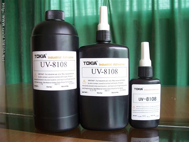 | 简介 | UV-8108紫外线固化胶水是专门用于接着玻璃、ABS、HIPS、PS、PC、PVC、压克力…等塑胶材质的固定与接着。其固化后清澈透明无痕迹,在紫外线光的照射下,胶水迅速固化,能与基材合为一体,产生极高的接着强度.特别是抗紫外线的压克力、PC等材质的应用方面,硬化后的接着强度甚至超过基材本体强度,是相当优异的塑胶类接着剂.若要接着的塑胶类基材有颜色或微透明的情况下,只需要增加足够光照时间,直至胶水完全固化. |