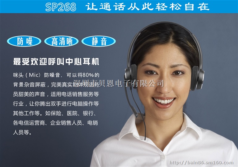 供应深圳贝恩IP电话话务耳机 办公有线电话耳机
