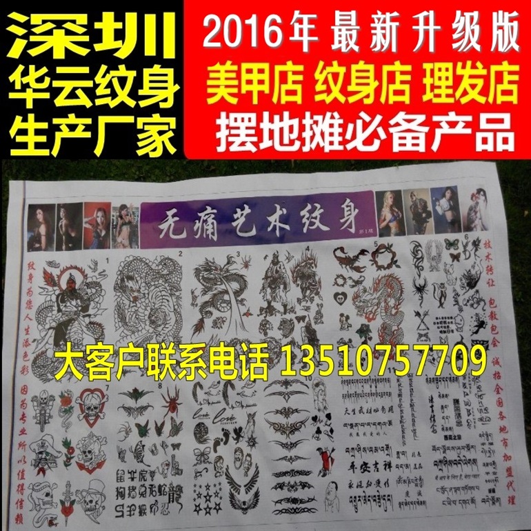 3、 多样性,暂时性艺术纹身(刮绘纹身)所用模板涵盖人物、动物、花草、图腾、卡通等众多类别,顾客选择图案的范围非常广泛;