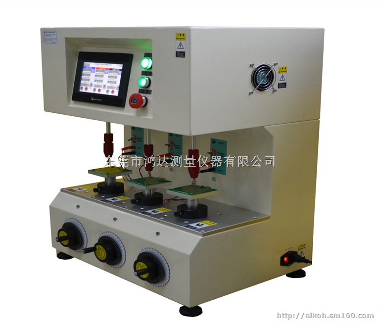 同时适用于硅橡胶类按键作疲劳测试;具有速度可调,次数任一设定及同时测试数个产品(每个产品均可多点测试),到达次数或掉电停机后保持数据。