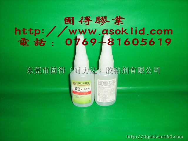 供应深圳胶水-414瞬间胶水,瞬干胶水,快干胶水◆SLD(时力达)牌SD-414瞬干胶水塑料粘接型 SD-414耐湿性,耐候性好。用于粘接塑料。抗冲击性能好,抗剥离强度高,能填充间隙。