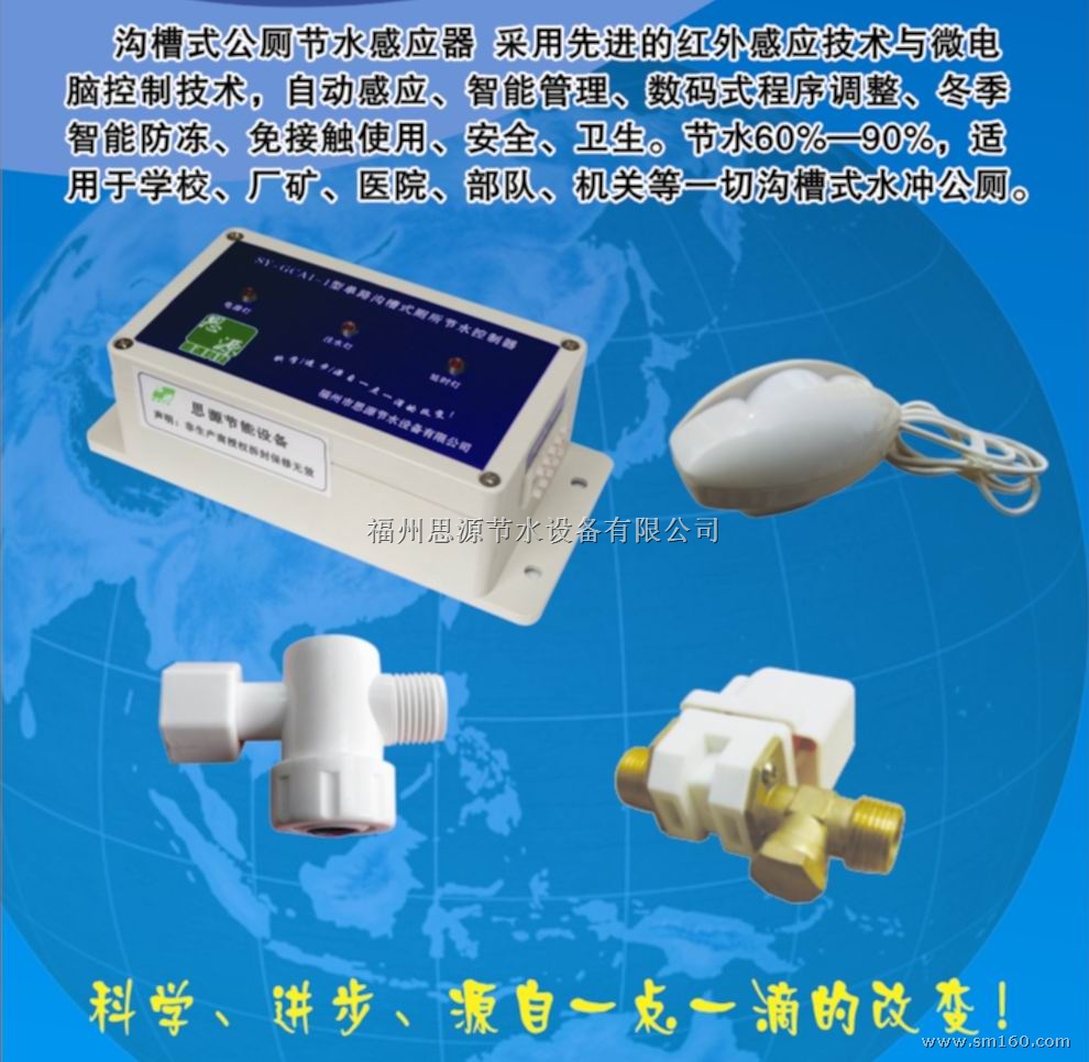 沟槽式公厕节水器采用先进的红外感应技术与微电脑控制技术,自动感应、智能管理、数码式程序调整、冬季智能防冻、免接触使用、安全、卫生。节水60%—90%,适用于学校、厂矿、医院、部队、机关等一切沟槽式水冲公厕。