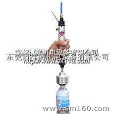 原理及特点: 手持式气动旋盖机便于随身携带,能方便地用于拧紧或旋松各种瓶盖。其可调的离合器可有效地避免瓶盖的损坏,并减少内塞的磨损。一旦瓶盖旋紧,卡头即自动停止旋转,表明您可进行下一个瓶盖的操作。如您同时选购支架,便可将旋盖机轻便、整洁地旋起。该系列机器能有效地减少劳动强度,保证旋盖质量。