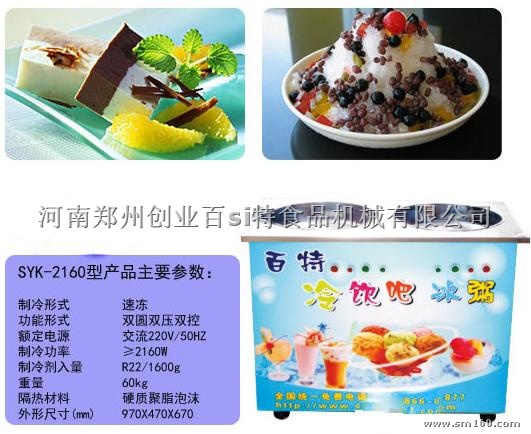 河南炒冰机,郑州炒冰机,炒冰机价格是由炒冰机、冰粥机、雪花酪机、冰激凌机、冷饮机、视窗展示柜等功能于一身,是炒制现代新颖冷食的最佳设备,能制作出来的产品有:水果炒冰、冰粥、炒奶果、硬质冰激淋、奶酪、红豆沙冰、绿豆沙冰、凉茶冰、玫瑰花瓣冰等格式中西饮料。