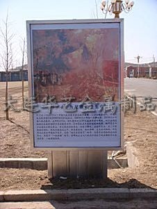 我厂可根据客户要求定做各种宣传栏、广告牌、候车亭等,已为金州恒利丰商城、轻轨和平站、五一路等制作换画灯箱候车亭;为部队定做用于展示军人核心价值观的不锈钢广告牌。