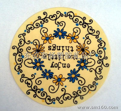 供应pvc软胶透明杯垫、花型印刷餐垫、笑脸拼图杯垫