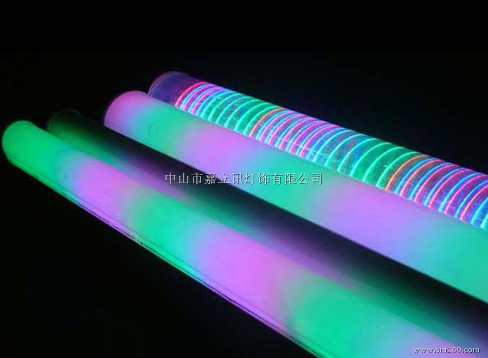 采用进口超高亮度LED芯片及进口PC管材,其基本特性是以RGB三基色及PCB电路板串(并)联混合连接,内置微处理器,执行主机传送的各种程序命令,能使众多光源组合时产生色彩和动态上的变化,有纵向分层追逐扫描、流水、扩张、渐变、同步等几十种变化程序,灯光效果有单色、三色变化、七色变化、三段变化、六段变化、九段变化、十二段变化等循环切换,除了推荐的几十种变化程序外,还可以根据客户的要求随机进行变幻花样的设计,七彩流水型护拦灯是通过新型的电脑编程控制,使其变化多达几十种,还可以根据客户需求而设定或自动变化。每米功率不超过12W,电压12V,PC管材直径可以为26mm,30mm,50mm,80mm,110mm, 灯泡粒数可以为96粒、108粒、120粒、144粒,150粒,亮度高、寿命长达100000小时,广泛应用于桥梁、广场、地铁、旅游区、商场等作指示、照明装饰。