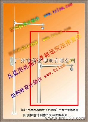 监控杆适用于平安城市监控项目、科技强警治安监控项目、车道电子眼用立杆、卡口测速用立杆、车道机动信号灯杆、人行灯杆等,我司还可以制作光机箱(IDF箱),主杆采用Q235钢压制成型,外观有圆锥形、多边锥形、大小直管式等,横臂长度可根据要求设计制作,同时对于跨度大的我司还可以设计龙六架;