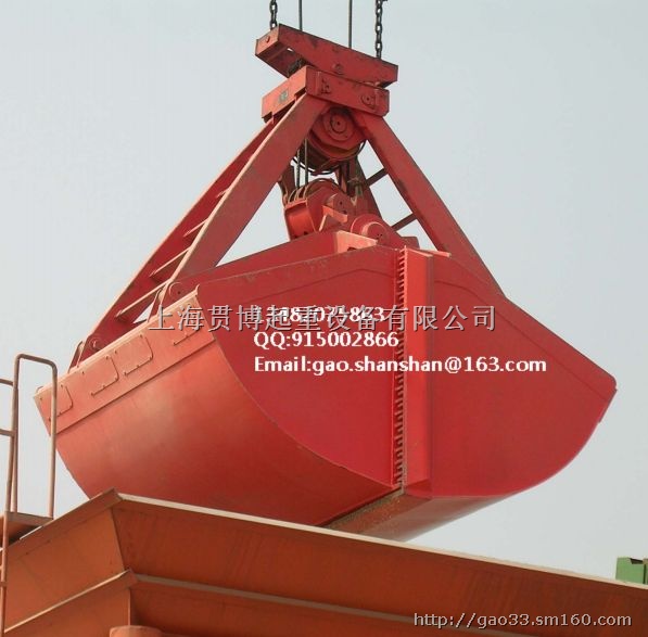 绳索抓斗分为四索、双索、单索几种形式,可配合各种类型的起重机,适应于各种粒度均匀的散货(平均粒度 <30mm ,最大粒度 <100mm )。