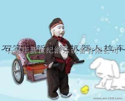机器人拉车是一种可供人乘坐的可行走的游乐设备,给机器人穿上漂亮的衣裳,并用蓄电池作能源对机器人充一次电可连续行走6个小时以上,机