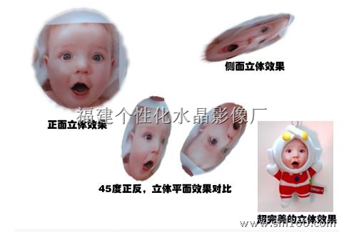 A:立体照片是根据您提供的平面照片打印出来进行制作的,所以不存在不像的问题;当然用平面的照片制作成立体照片,肯定要经过一定的变形,但在两边脸对称的情况下,效果还是很好的,所以我们要求照片是正面且对称的。
