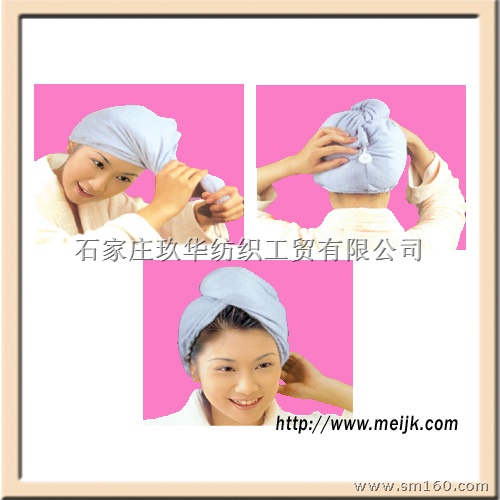 0311-85282176 www.meijk.com美家康干发帽采用涤锦复合超细纤维织造,其纤维细度是头发丝的1/200,是普通纤维的1/20,纤维强度是普通毛巾纤维的5倍(耐用性),吸水速度和吸水量是普通毛巾的7倍,这就是美家康干发帽能够快速干发的原理。每次洗完头后,湿漉漉的头发粘在头上真难受,特别是寒冷的冬天,爱美的女士那湿湿的长发极易将背后的衣服弄湿,很容易引起感冒和头疼,怀孕及经期妇女谨慎洗头就是这个道理。想尽快将头发弄干,使用电吹风又会担心损伤发质,美家康干发帽超强吸水性,洗发后,用此干发帽包好头,几分钟后,湿发中的水分就会被完全吸收。包上干发帽就可睡觉不头疼、不感冒,工作、休息两不误,方便快捷,保护发质,并可用于对头发的焗油,倒膜。