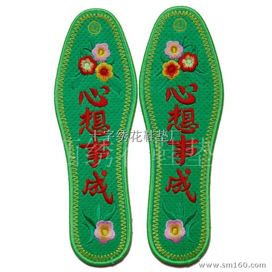缎面绣花鞋垫:是跟十字绣鞋垫完全不同的一种绣法,传统的手工绣花非常费时,现在采用机器绣花取代人工,使产品的生产效率大大提高,缎面绣花鞋垫就是这样一款产品,机器全部绣好的成品绣花鞋垫,不需要再加工即可直接使用,目前正在全国各地批发市场热销,是鞋垫经销商,鞋类销售商及各类百货店畅销的产品之一。