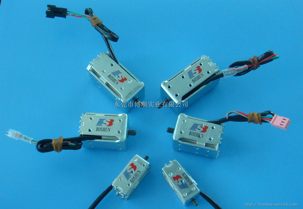 电磁铁、电磁吸铁、螺线管、线圈、电磁阀、水阀、气阀、泄气阀、排气阀、电控锁、按摩椅电捶、valve、 coil、solenoid-valve 、solenoids、Electro-magnet广泛运用于自动控制设备:办公设备(打卡钟、复印机、传真机、扫描仪、装订机、美工切纸机、计算机机箱控制锁、喷码机、喷墨机)、金融设备(收款机、点钞机、验钞机,换钞机、贩卖机投币器、收银机、钱箱);各种电子自动门锁((防盗门锁系列)、商场储物寄存柜、门禁机、电子门锁,储物柜、消防器材、安防器材、密码锁、保险柜);消费机,售饭机,读卡机、自动售货机,投币电话机、大米分选机、LED显示屏、自动气路控制,自动水路控制、巡更机、各自动机械(纺织机、绣花机、毛织机、绣花机、邦定机);家用电器(咖啡机、饮水机、电压力锅、电饭煲、烤面包机、空调、洗衣机、冰箱,洗碗机);健身器材(按摩椅、按摩垫、按摩床、美容设备、按摩锤、足底按摩器、美腿机、气垫床、娇正器)、医疗设备(血压计、牙科整牙机、脉搏器、血液透晰仪)、通讯设备、电子电机零件、各类游戏机(玩具、弹珠台、挖糖机、跳跳球、娃娃机、蜘蛛王、投币机、打老鼠、打地鼠、青蛙王子);汽车零件(汽车车灯、汽车电源转换器、汽车排气箱、汽车换檔器、汽车按摩椅电磁阀、安全皮带锁、汽车氙气大灯、汽车伸缩灯、汽车后背箱锁)……等等控制设备。