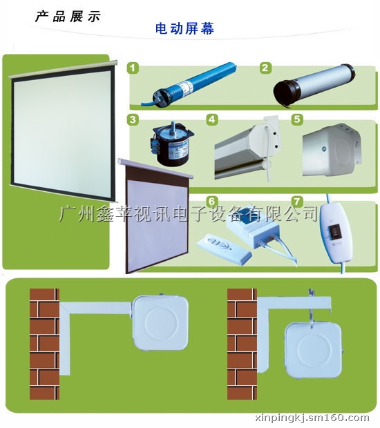 投影方式:正投 外观形状:方(四边)形、八角形、六角形(采用0.6mm冷轧带钢材料) 幕面材料:白塑、灰塑、白玻珠、灰玻珠等 控制:手动开关、无线遥控器(配上、停止、下三按键) 插头电源:任意国家标准插头,110V-127V/220V-240V 电机:侧挂式同步电机、管状棒式电机(均通过UL、CE、ROHS认证) 采用先进的行程限位系统,可以根据自已的要求非常方便的重新设置屏幕放下的总高度定位。 注:A. 180英寸以上采用管状棒式电机最大可以做到300英寸无拼缝幕布。 B. 可以根据要求定做尺寸