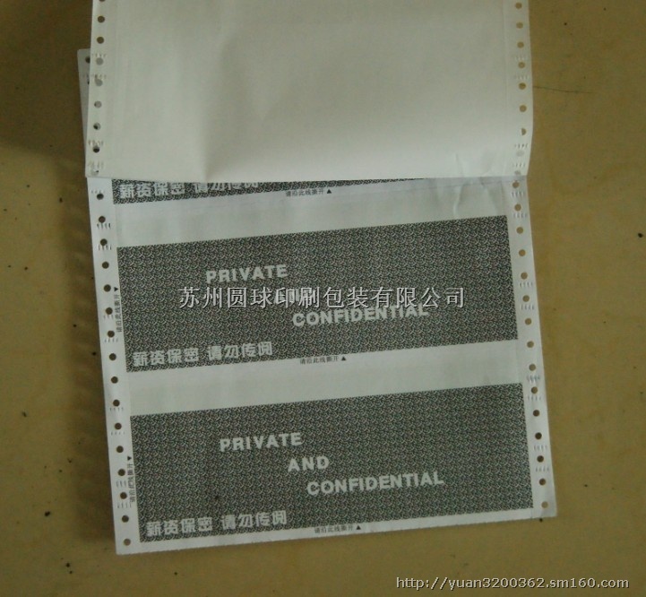 适用于各企事业、银行、移动通信等发员工薪资或作保密用途。提供多种规格、1至3联,具有无碳复写、电脑连续打印、个人信息保密功能。本产品使用方便、打印快速、管理科学,是提升企业形象及现代化办公必备软体需要; 密码信封的技术特点: 多种背面底纹可选,保证打印内容的安全性;打印位置复选与不复选自由选择,更增加了印品的保密性;有色胶粘接,易于检查;粘贴牢固,撕开后无法复员,真正安全保密;厚 薄纸多种选择,适于用户各种用途;单/双工位装订可选,保证打印过程流畅。一般有三种大 24*14cm 11孔中 24*10.1cm 8孔小 24*9.3cm 7孔以上表格中的大小,规格,孔数皆相对应.