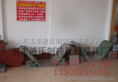 〈6〉全部设备投资要低于老型设备,真正做到高效、低耗一机多用,如构件厂只需一台设备就能生产:草坪砖、大型路沿石、水磨砖、异型路面花砖、砌墙砖、八孔砖、护坡砖、农田基本建设及公路两侧一次性成型U型排水渠、檐板等多种水泥制品。生产时只需更换模具即可。