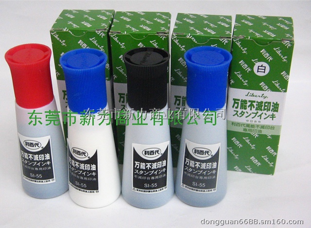 ◆台湾制造商:台湾Liberty利百代国际实业股份有限公司,台湾利百代SI-55环保万能不灭印油。◆型号:SI-55、规格:55cc、塑胶瓶,颜色:黑、白、红、蓝,环保型产品,通过国际最新RoHS认证,价格实惠。◆用途:适用金属、喇叭、电器、线路板、电子PP板、玻璃、陶器、塑胶、橡胶、木材、布料、皮革、石器等非吸收性表面材质,作商品批号、检验、出厂日期、有效期限、公司机关资产编号等…均可应用,效果显着。耐橡胶印章、印迹清晰持久不褪色。◆使用请用瓶盖内附毛刷沾取少量印油多次均匀涂刷于印台。