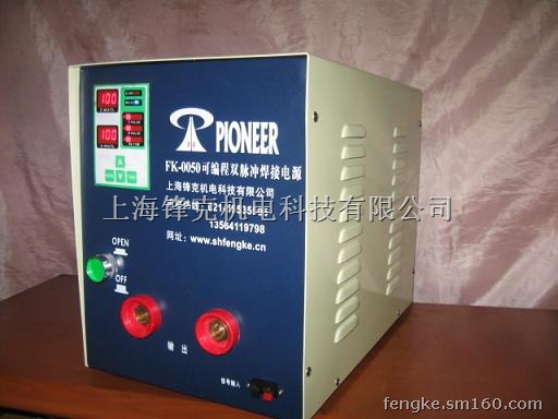 FK-0050焊接电源:本机采用先进的微处理器控制,可灵活编程,并储存0-9共十组不同的焊接程序。独立设置电压自动补偿措施,这样一来就不会受电网波动的影响,电网电压在+-10%变化,而输出的电流不会超过+-1%,焊接能量采用数字式显示,能方便调出精确的参数,且储存在记忆体中,不改变的话将永远保留下来。