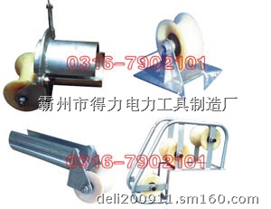 电缆孔口保护滑车: 单轮,滑轮可按牵引需要以任何角度放置于孔口,并可锁紧,尼龙轮
