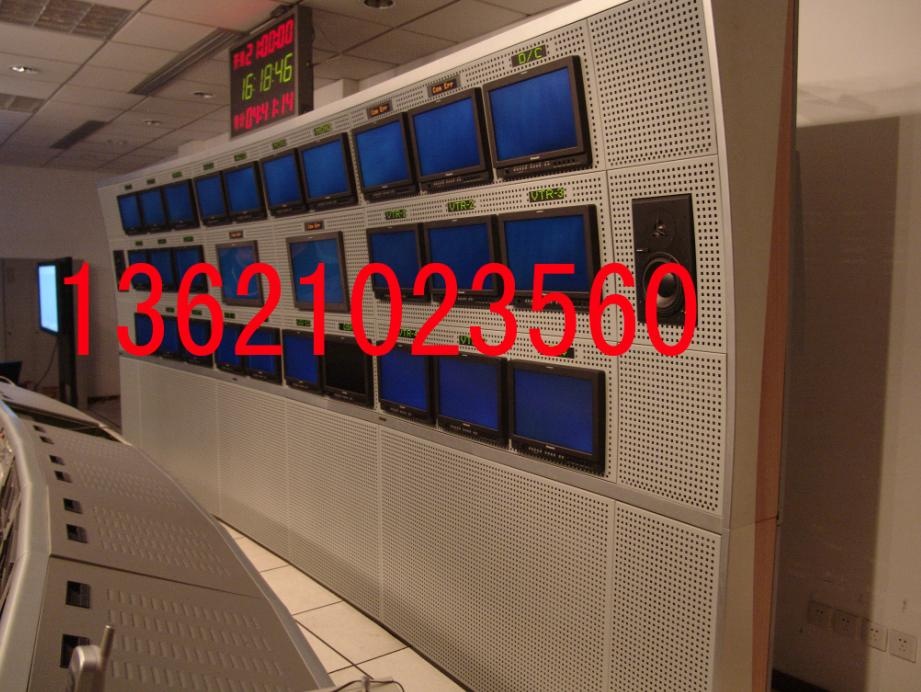 {电视墙系列}适用机房:广播电视,院校,单位等专业广播直播机房。总体设计:钢木拼装结构,流线型设计,可放标准19英寸设备,前后可以多种结构组合,门板,盲板均可内置托架,托板.安装方便快捷,外形美观大方,方便各种标准音视频设备的安装等。也可根据您的建议进行系列设计