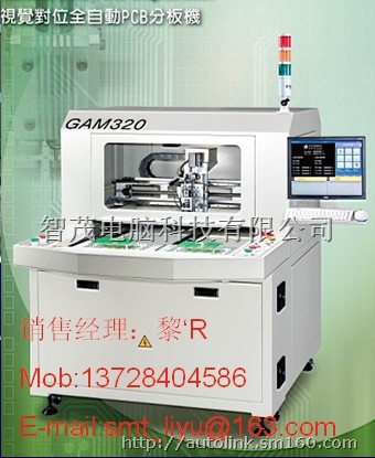 PCB Separator 也称为,基板切割机,基板分割机,分板机, 使用高速旋转的 Spindle – 主轴,使用高速旋转铣刀进行切割.可切割高密度插贴件后的基板,并不需要 V-cut (V 槽 ) , 盖线(类似邮票孔的开线)就可以安全地切割基板