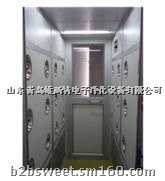 风淋室是人进入洁净室所必需的通道,它可以减少人进出洁净室所带来的污染问题。风淋室的两道门电子互锁,可以兼起气闸室的作用,防止未被净化的空气进入洁净室,本公司生产的高科技智能语音风淋室带有语音提示系统,人在吹淋时由自动语音系统提示让人有次序的完成整个吹淋除尘过程,人性化语音提示给人一种亲切感觉,并达到有效的净化效果,经高效过滤器过滤后的洁净气流由可旋转喷嘴从各个方向喷射至人身上,有效而迅速清除尘埃粒子,清除后的尘埃粒子再由初、高效过滤器过滤后重新循环到风淋区域内。