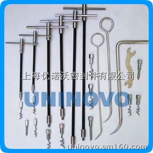 使用优诺沃组合盘根工具之前,应根据盘根的尺寸选择不同长度性质的拉杆和相应规格钩针扳手组装好一个盘根提起工具,然后将锥头旋入盘根经向对的两点,分别旋转几周,按下列方法进行: