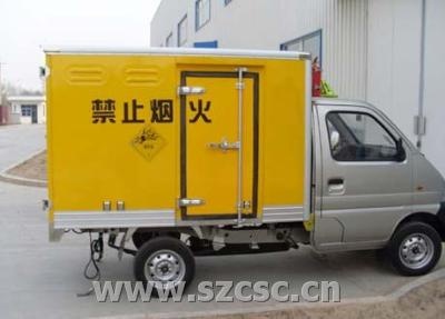 爆破器材运输车是运送危险爆破器材物品的专用车辆,我公司生产的爆破器材运输车严格按照国防科工委科工爆[156]号《爆破器材运输车安全技术条件》等有关国家标准要求制造。厢体全金属整体骨架式,车厢壁板的内部材料用导电好、摩擦不起火花的铝板制作,地板用导静电橡胶。整车具有外型美观,强度高,防雨,防火阻燃,防静电火化,烟火报警和防盗等功能。