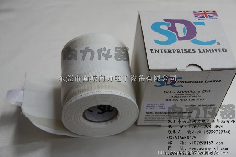 SDC DW 多纤维布用于颜色坚牢度的评级。 由六种纤维组成:醋酸纤维、棉、尼龙、涤纶、