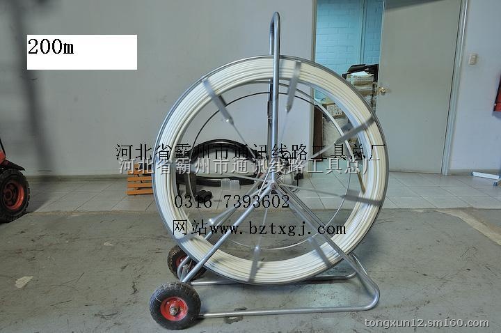 产品说明:玻璃钢穿孔器又名 (玻璃钢穿线器、玻璃钢穿管器)对于在管道中牵引引导绳是优秀的辅助工具。光滑又富于弹性的表面可使穿孔器轻松地通过狭窄的通道。穿孔器由三部分构成:铜芯、玻璃纤维加强层、高压低密度聚乙烯防护层(平滑、坚固,可抵抗恶劣环境)。铜芯导体使捅条可以用不同方式轻易安放。璃钢穿孔器具有省时,省力,提高工效等优点,可用于电信管道清洗及光缆,电缆和塑料子管的布放。使用时首先将玻璃钢覆杆由引轮引出,然后与相应的金属头联接,穿入管路内。用于清理时,引导头带动清理工具,可以清理管道;用于布放电缆时,可先将钢丝或铁线带入,尔后用钢丝或铁线牵引电缆入管。