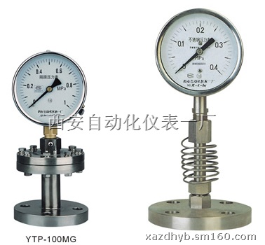 为了扩大各种通用型压力仪表的使用范围,能适用于测量强腐蚀、高温、高粘度、易结晶、易凝固和有固体浮游物介质的压力,以及对某些测量介质不能直接进入通用型仪表内和便于清洗防止沉淀物质积聚的场合的压力检测时,必须采用由隔膜隔离器与通用型压力仪表组成一个系统的隔膜表。