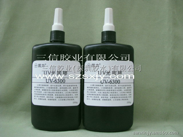 深圳市三信胶业有限公司公司生产和销售的“固力”6000系列紫外线胶水,主要用于粘接灌封和固定其是一款不含溶剂的胶粘剂,在紫外线照射下数秒钟内固化.UV6000系列对于塑胶透明材料之间的粘接以及塑胶材料与金属之间的粘接都有优良的效果.特别是UV-6300紫外线胶水针对塑胶透明材料大面积粘接,粘度低,流动性好,消泡性能佳,透光性优良,是有机玻璃行业塑胶行业不可缺少的胶粘剂.