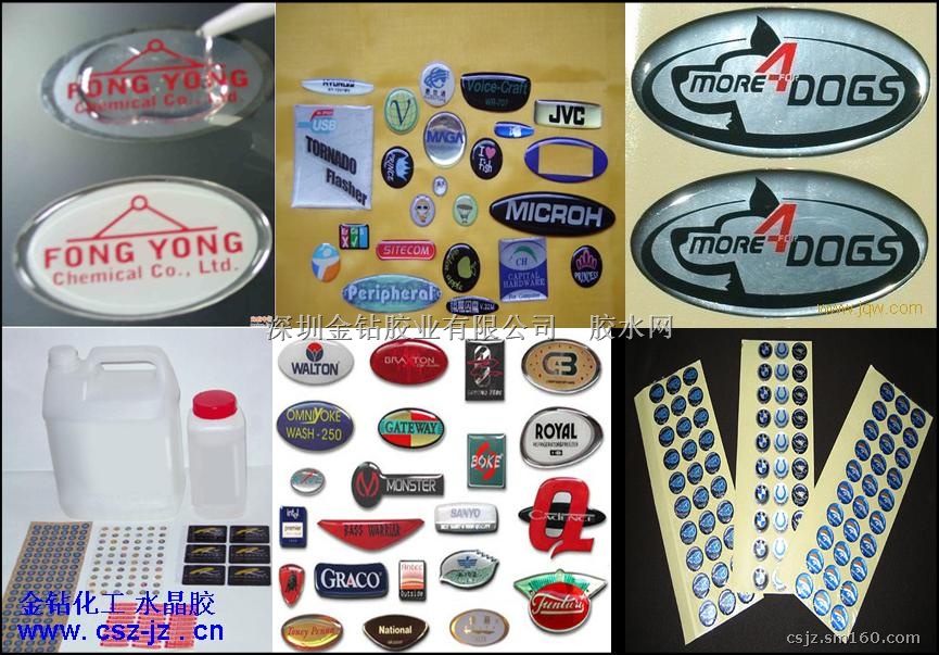 金钻胶业利用自身水晶胶优势,承接各种水晶滴胶加工;其做工细致、胶体晶透、表面平整、耐黄变时间长、抗老化性能佳等特点,已不断承接如:中国移动、中国电信、华为、三星、宏基、苹果、澳洲石油公司、卢州老窖等公司的LOGO标牌、赠品卡、磁卡;长期承接澳洲石油公司的全澳洲石油加油卡业务,为其提供年1000万张PVC加油卡; 金钻胶业主要承接:标牌滴胶、铭牌滴胶、不干胶滴胶、PVC卡滴胶、磁卡滴胶和LOGO滴胶等滴胶加工;