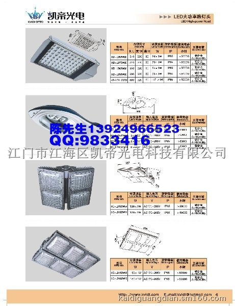10. 大功率LED路灯使用寿命长,光源寿命50,000小时以上,是传统灯的5~10倍。LED光源采用目前技术最为成熟的白光1W封装,表面贴焊在2mm厚的铝基电路板上,再把铝基板安装在散热器平面上,可确保热量快速的传导到散热器上。另外散热器与灯壳一体化设计,充分保障了LED散热要求及使用寿命。先进的封装工艺确保LED的高可靠性,良好的散热确保LED工作在允许的温度下,两者相结合充分保障了LED的超长使用寿命。
