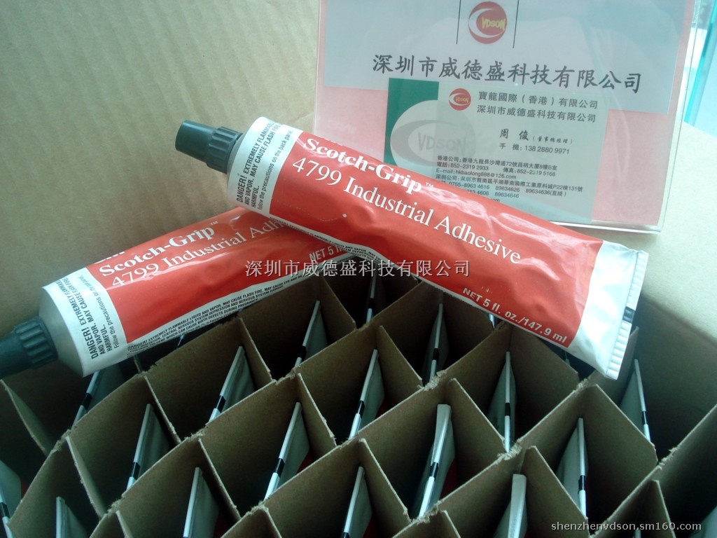 3M4799黑胶系列用于塑胶、PVC镱片等之粘接,特别适用于粘接家电的显示窗口。强度高,粘性持久,而且溶剂不腐蚀丝印油墨。3M4799 147.8ml/支 36支/箱