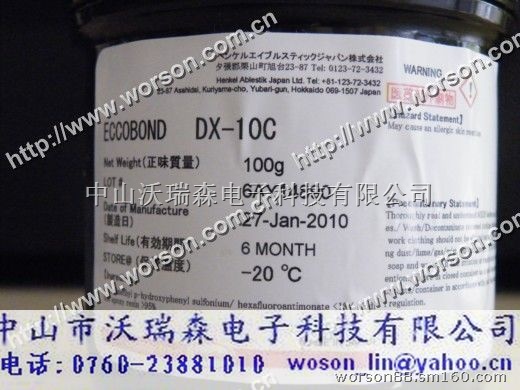 Emerson&cuming ECCOBOND DX-10C电子粘接胶有很好的粘接强度, 可以很好的降低Wire bonding的不良率. 它有很好的耐热和耐UV性能. 适用于白光和蓝光LED芯片的绝缘粘接,也适合双电极红光。其特点:1.芯片粘接强度高;2.亮度高,Iv可提升5~15%;3.亮度衰减小;4.减少色差(中间不会太蓝).可以移针点胶、压印、针筒点胶。