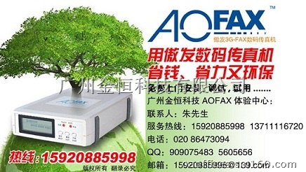 高速免费传真:收发双方都使用AOFAX,包括免费的软件型,互发传真免费,速度达每秒数百 K或更高,上百页的传真几秒就发完啦。