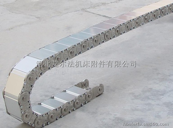 链板的高度,也就是支撑板的高度,是由电缆最大直径。决定的,机床最大限度运转时,如拖链的宽度超过300mm,拖链的长度超过4m进出于稳定性原因,应考虑选择加大一号规格的拖链.