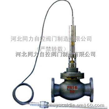 被控介质温度高于设定值时,感温液体膨胀,推动阀芯向下关闭阀门,减少热媒的流量;被控介质的温度低于设定值时,感温液体收缩,复位弹簧推动阀芯开启,增加热媒的流量。
