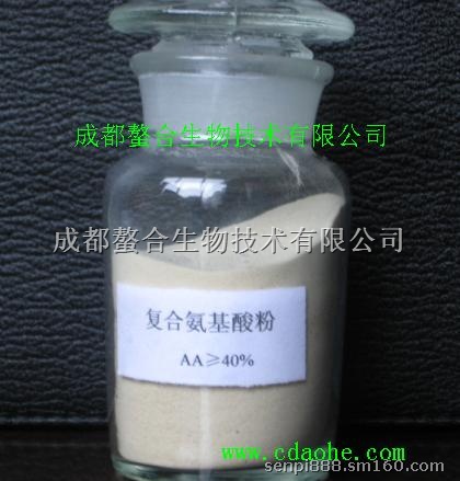豆粕、鱼粉理想替代原料——饲料级复合氨基酸粉,成都螯合生物技术有限公司生产的氨基酸粉可替代豆粕、鱼粉等用于饲料预混料、浓缩料、全价料及水产料中。本品经过除重属除杂处理,各卫生指标合格。氨基酸含量AA≥40%,粗蛋白≥95%,水份≤5%,Pb≤40ppm,As≤10ppm。