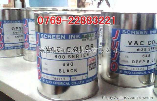 日本十条油墨600系列VAC油墨---东莞市雅丽丝油墨有限公司一级代理商 600光油 602黄 603柠黄 605鲜红 608特白 608红 614黄 616玫瑰红 617深红 618深红 622洋红 625紫 628橙 635天蓝 645深蓝 646蓝 675绿 685紫蓝 687紫蓝 690黑 日本十条600系列ABS丝印油墨 600系列挥发干燥型VAC油墨是高光泽,颜色鲜明的厚膜型油墨。印刷作业适应性超群,适合于高速印刷。 用途 特长 干燥时间 版及洗版 耐候性 颜色包装 注意事项 欢迎您来电洽谈!我们竭诚为您提供专业技术服务。