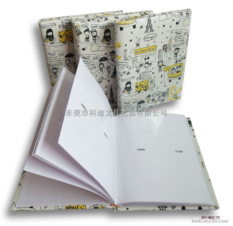 材质:封面用卡通印花棉布裱硬纸板;内页是纸芯套PP袋.