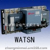 标准: IEC60947-6-1:1998(1.2版) (低压开关设备和控制设备第六部分自动转换开关电器) GB14048.11-2002 (低压开关设备和控制设备自动转换开关电器) WATSN自动转换开关特点 ◆三种可选工作方式: 自投自复工作方式 互为备用工作方式 自投不自复工作方式 ◆三种稳定工作位置: 常用电源合、备用电源分 常用电源分、备用电源合 常用电源分、备用电源分 ◆使用类别:AC33B,电动机负载或包含电动机、电阻负载和30%以下白炽灯负载的混合负数。 ◆体积小、结构简单、外形美观、具备1A-630A规格,操作方便、使用寿命长、2极、3极、4极开关均可提供。 ◆开关切换驱动采用单电机驱动,结构简单切换可靠平稳、无噪音、冲击力小。 ◆开关带有机电联锁保护,确保自动转换开关可靠工作,互不干涉。 ◆开关能带负载自动切换,紧急时可采手柄进行手动切换。 ◆与其它公司同类产品相比的特色: 1、控制器保护熔断器分断能力为50KA,提高了配电安全。 2、在手动与自动运行方式间加有联锁,保护自动情况下不可手动操作。 3、执行断路器手柄折断、触头粘接或负载故障(过载、短路)时自动转换开关不切换,真正实现机电联锁。 4、MCB型自动转换开关驱动机构擒纵由叉型改凹型,解决了MCB加长手柄断裂、MCB闭合不同步等故障,恢复了MCB速合、速断的功能,有效提高了产品的机械寿命。 5、提供进线侧接错线保护,当用户将电源零线与火线接反时,通过声光进行报警,提高了设备的可靠性。 电源转换系统的功能与分布: 注:1、对非标类产品客户需注明具体要求,如消防信号有形式(恒压DC24V/脉冲DC24V/恒压AC220V/肪冲AC220V,不加标注时默认值为恒压DC24V)、无源反馈信号的类型(位置/报警)、数量(默认值为1组位置反馈信号)。 2、如客户对执行断路器、脱扣器有特殊要求,需另加注明)。