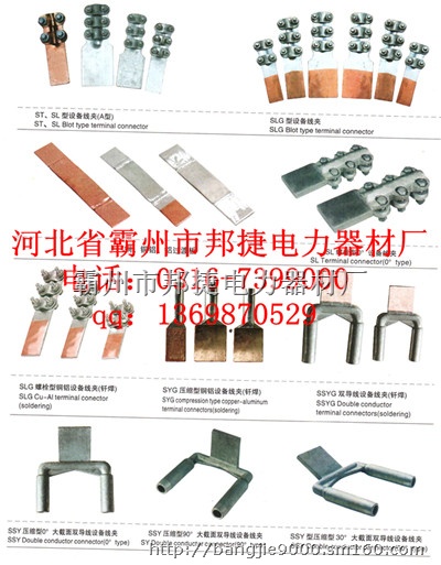 铜板卡子、铜铝弓子卡子,SBGL铜铝螺纹线夹,SBTSBG铜铝、铜变压器线夹,接护线夹及绝缘套,STSL型设备线夹,SLG型设备线夹,铜、铜铝、铝过渡板,SL螺栓型0°设备线夹,SLG螺栓型铜铝设备线夹,SYG压缩型铜铝设备线夹,SSYG双导线设备线夹,SSY压缩型90°、30°大截面双导线设备线夹,JBTJBTLJB铜、铝、铜铝并沟线夹,JBB铁并沟线夹,APGCAPG型铜铝并沟线夹,CAPG-C铜铝并沟线夹,LJG铝束管、WCJB接线端子、接线夹,JT钳压管、JTB爆压管,JBDJY接续管,XGU-X悬垂线夹(下垂式),XGF悬垂线夹(提包式),XCS悬垂线夹(双线夹垂直排列),CGH悬垂线夹,XGT悬垂线夹、XTS悬垂线夹(双导线跳线用),XGU悬垂线夹(带U型挂板)、XGF-K悬垂线夹(上杠式),XGU可锻铸铁悬垂线夹,XGU悬垂线夹(带碗头挂板),QQP型球头挂环,UUL型挂环,T/J螺栓线夹,CCA铜接线夹,黄铜接线夹,黄铜活动接线夹WWS型碗头挂板,心形环,花兰螺丝,PS-7型平行挂板,DB型调整板、L型联板,PD挂板、L型调整板,PH延长环、ZH直角环,ZS型直角挂板,Z型直角挂板P型平行挂板,UJ-1880加强U型螺丝,QP型接头挂环组装与WS碗头挂板组装,FD型防震锤,FDZ型防震锤(500KV线路用),FJQ型间隔棒,TJ型间隔棒(500kv跳线用),MRJ型软母线间隔棒,FYH预绞丝护线条铝包带,ZC重锤片,FJP-500N均压屏蔽环(500KV线路用),FJP-500N*2均压屏蔽环(500kv线路用),FJP均压屏蔽环,NX型楔形线夹,JK型钢线卡子,防盗帽,UT型线夹,TL型单导线T型线夹,TLS双导线引下线T接线夹,T型线夹(螺栓型),TY型线夹,MGH消振环(上环、下环),MG0°双T型线夹,MGG型管母线固定金具,MGG1/2型活动式管母线固定金具,MGT型管母线T型线夹,MGS型管母线伸缩节,MGZ型终端球,MG/MR30°管母线双引下线T型线夹,MDG软母线固定金具,MSG双母软线固定金具,MGF型封端盖,MGJ-104型支架,MJG型矩形母线间隔垫,MNP型矩形母线平放固定金具(户外一片),MWP型矩形母线平放固定金具(户外一片),MNLMWL型矩形母线立放户内、户外固定金具(一片),MCMMCN型槽型母线固定金具(户外、户内),YH(2+12)型组合圆环,MCD型槽型母线吊挂金具,MCG槽型母线间隔垫,DTL-1DTL-2系列铜铝接线端子,DT系列铜、铝接线端子,DTG)系列铜接线端子,DL铝接端子,JG铜接线端子(镀锡),DLT系列铝铜接线端子,DTF防水型铜端子