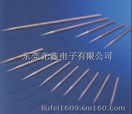 规格:0.5*10*12.5UR*L15用途:ITO短路检测用。ITO短路测试探针规格:0.5*10*12.5UR*L15产地:日本材质:W合金用途:检查为防止ITO短路引起的不良。作用:在Pattern上接触针子对电流值的测定,即针子之间的阻抗。