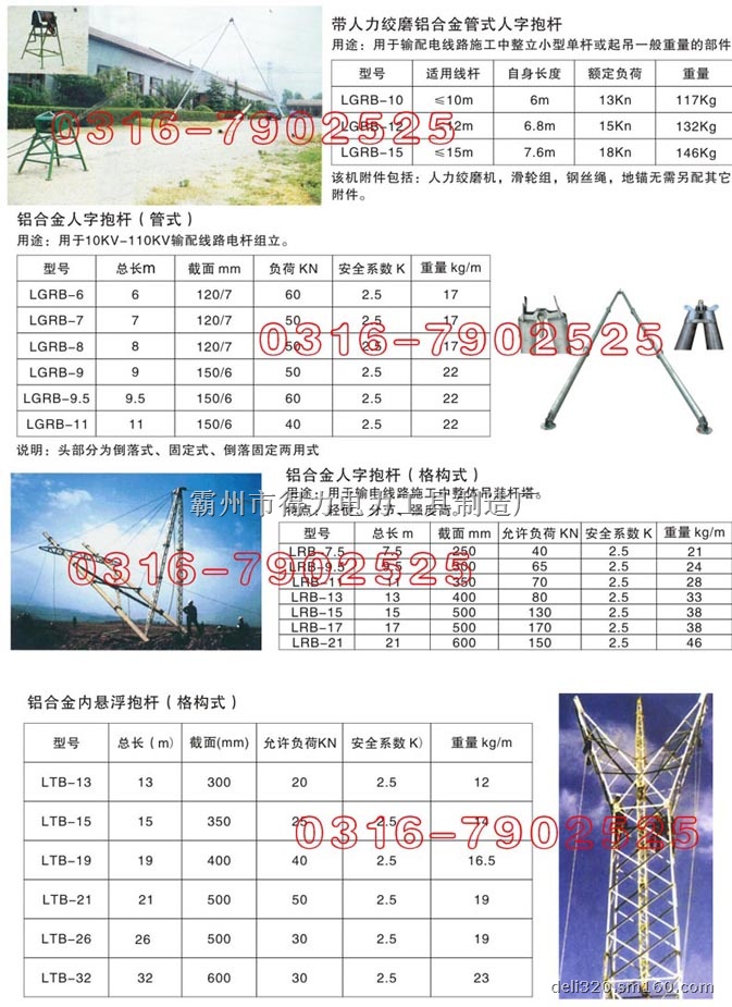 TLB-9铝合金人字抱杆 | 4.5+2+2.5 | 30 | 165 | |